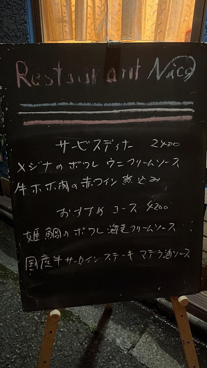 To finish, desserts provide a gentle close rather than excess. 本日 の デザート reflects seasonal sensibility, and チョコムース delivers a smooth, classic sweetness that never overwhelms. The presence of ボルドーワイン ties the menu together, complementing both meat-forward mains and lighter fish courses with equal ease. Taken as a whole, the menu at Restaurant Nico feels deliberate and complete, offering a well-rounded review of flavors that rewards diners seeking consistency, craftsmanship, and quiet confidence in every dish.