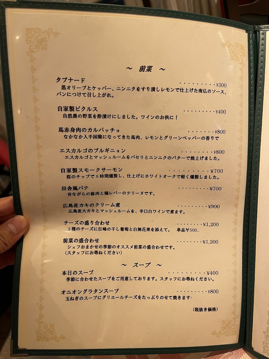 At Restaurant Nico, the menu feels carefully curated to balance rustic French technique with seasonal clarity, and the standout dishes come together as a cohesive dining narrative rather than isolated highlights. Savory depth anchors the experience, beginning with 前菜の盛り合わせ, which sets a thoughtful tone through variety and balance, while サラダも adds freshness that keeps the progression light. Comforting soups such as シイタケのスープ and パンプキンスープ deliver warmth and umami, pairing naturally with the コースに含まれるパン, which completes each course with satisfying simplicity.